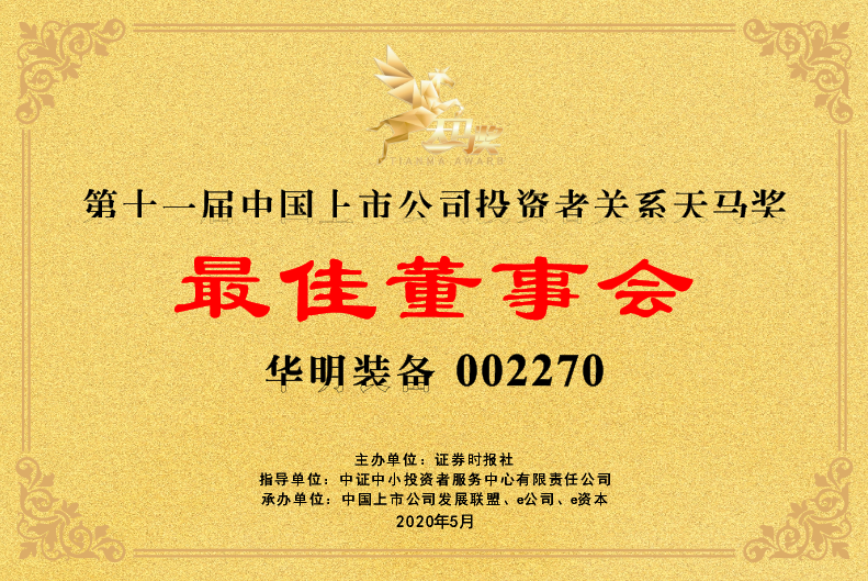 華明裝備獲第11屆中國(guó)上市公司投資者關(guān)系天馬獎(jiǎng)